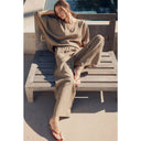 The flattering V-neckline adds a touch of sophistication, while the muted olive hue offers endless versatility for pairing with both casual and tailored pieces. Perfect for layering or wearing on its own, this top transitions seamlessly from laid-back days to elevated evenings with minimal effort.